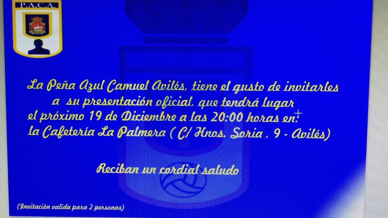 Hoy 18 del 12. Mañana estamos invitados a la inauguración de la Peña Azul CAMUEL, en la cafeteria La Palmera, en la calle Hermanos Soria 9, en Avilés, a las 20h.