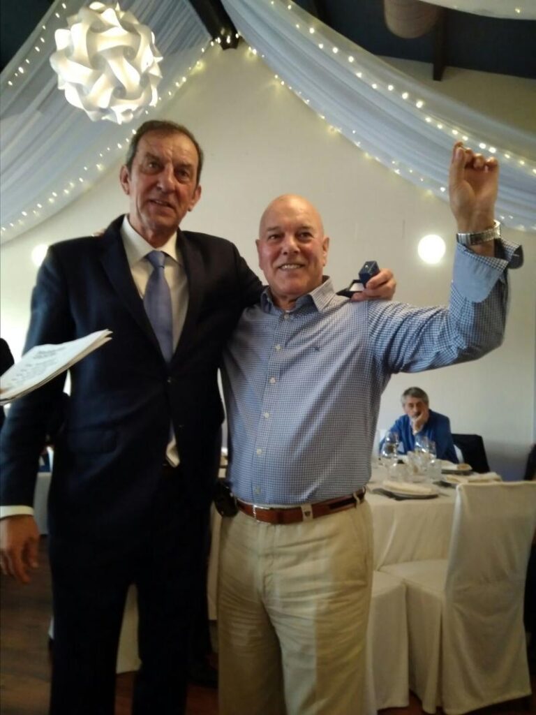 El pasado dia 21 se impusieron las insignias de ORO 2018. Nicomedes Martinez del Pozo "NICO" recibe la insigna de manos de nuestro presidente de Honor