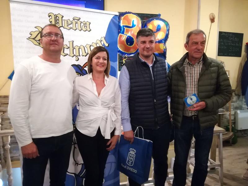 Ayer la Peña azul BOCHUM celebró su 32 aniversario , en su sede el Bar Campomar. Este año el homenajeado fue el exjugador Vicente. Ino, fue el encargado de leer los motivos porque le dan el homenaje a Vicente. Le acompañaron Tomas, Cesar y falto Carlos, enfermo de gripe. Gran ambiente con representantes del R Oviedo, la APARO y de otras peñas. Cristina, presidenta de la Peña fue la encargada de dar el trofeo.