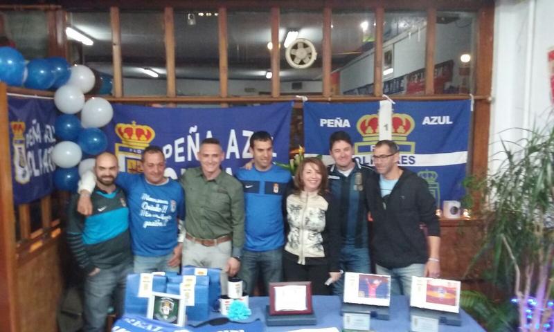 Hoy 18 del 3. El pasado miercoles, la Peña Azul OLIVARES, celebró su fiesta anual, en el Bar Cafetus, nombrando al ex jugador ARMANDO, socio de honor. La presidenta de la peña, Maria, le entrego una placa. También estuvieron invitados los peñistas argentinos que vinieron a ver el Oviedo.