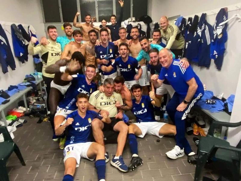Ayer 30 de noviembre se jugó en Santa Cruz de Tenerife el partido correspondiente a la jornada nº 18 del Campeonato de Liga 2ª División – Liga Smartbank entre el CD Tenerife y el Real Oviedo; el encuentro acabó con victoria para nuestro equipo por cero goles a uno, tanto marcado por David Costas en el minuto 51 de partido. En la foto se ve a nuestros jugadores y cuerpo tecnico en los vestuarios del Heliodoro Rodríguez López celebrando el triunfo.