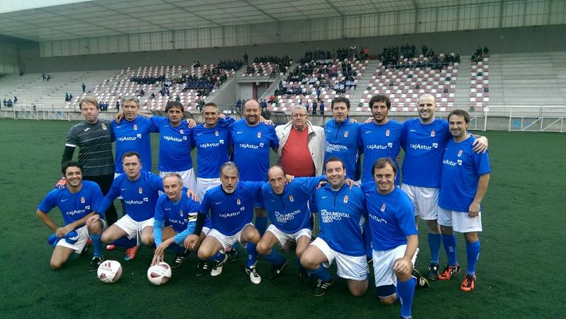 Foto donde está TATE (de pie, el cuarto por la derecha). Partido de los veteranos contra los veteranops del Romanón