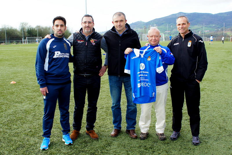 Foto: Balan, segundo por la izquierda, cuando se firmo la colaboración entre el R Oviedo y el R Juvencia de Trubia, del que es su presidente
