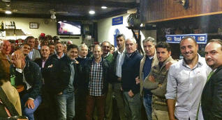 Foto: BARRETO, en el centro rodeado de ex directivos, ex técnicos y ex jugadores del R Oviedo, el día de la inauguración de su peña