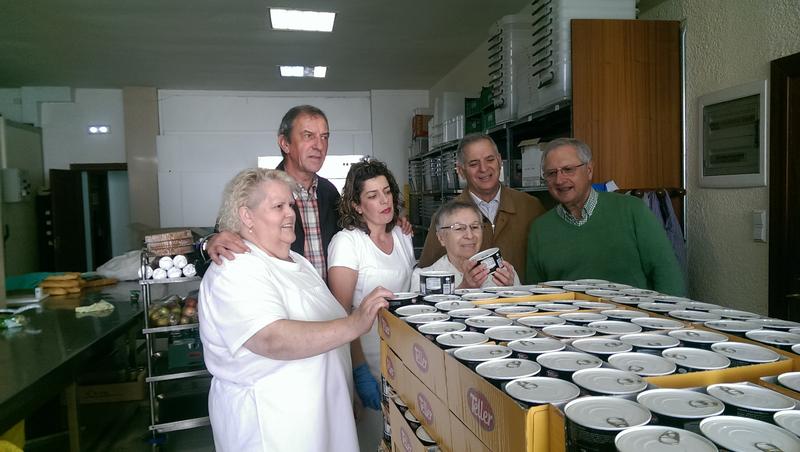 Foto: detras los veteranos Vicente, Amor y Jose Luis Coruña. Con Belén y Viki, cocineras y Sor Esperanza, directora, con el pale de callos a la madrileña