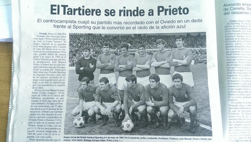 Hoy 2 bdel 3. En La Nueva España de hoy, en la pagina 44 publica, Mario Braña recuerda con Prieto, el partido, en el viejo Tartiere, del 4-5-1969, contra el Sporting, donde Prieto fue la figura del partido. Como ejemplo: en una jugada deszbordó de forma consecutiva a Puente, Herrero, Senarriaga, Florín y a alguno más de una vez. El 10 PRIETO, con sus impresionantes galopadas y maravillosos driblings desmanteló con sus fintas a todo el dispositivo defensivo sportinguista. Prieto fue la figura del partido