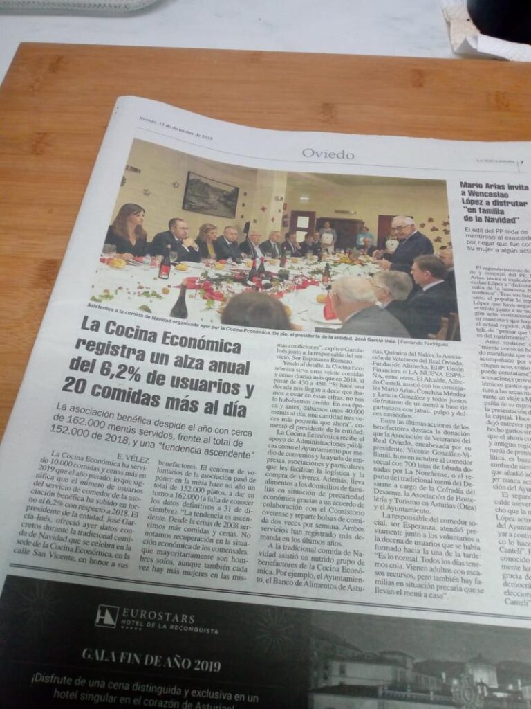 El pasado jueves, día 12, la Cocina Económica invito, a nuestra Asociación, a su comida anual, donde dan las gracias a todos los que les ayudan. Estuvimos representados por nuestros dos presidentes Juan Manuel y Vicente