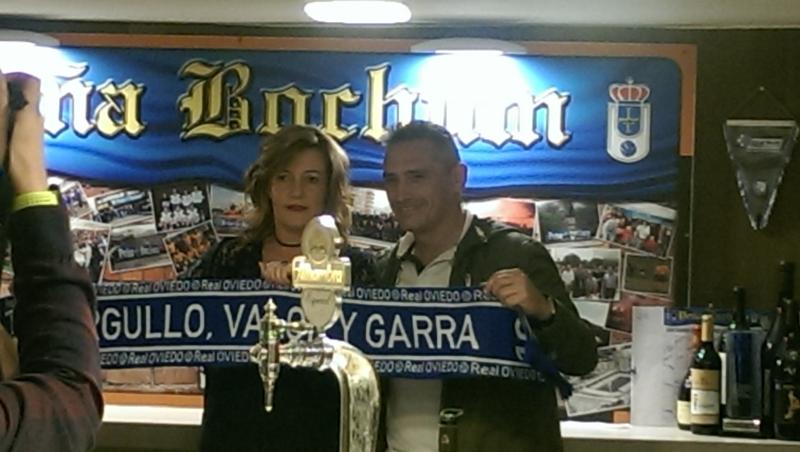 Foto: Armando entrega a Cristina, presidenta de la Peña, una bufanda