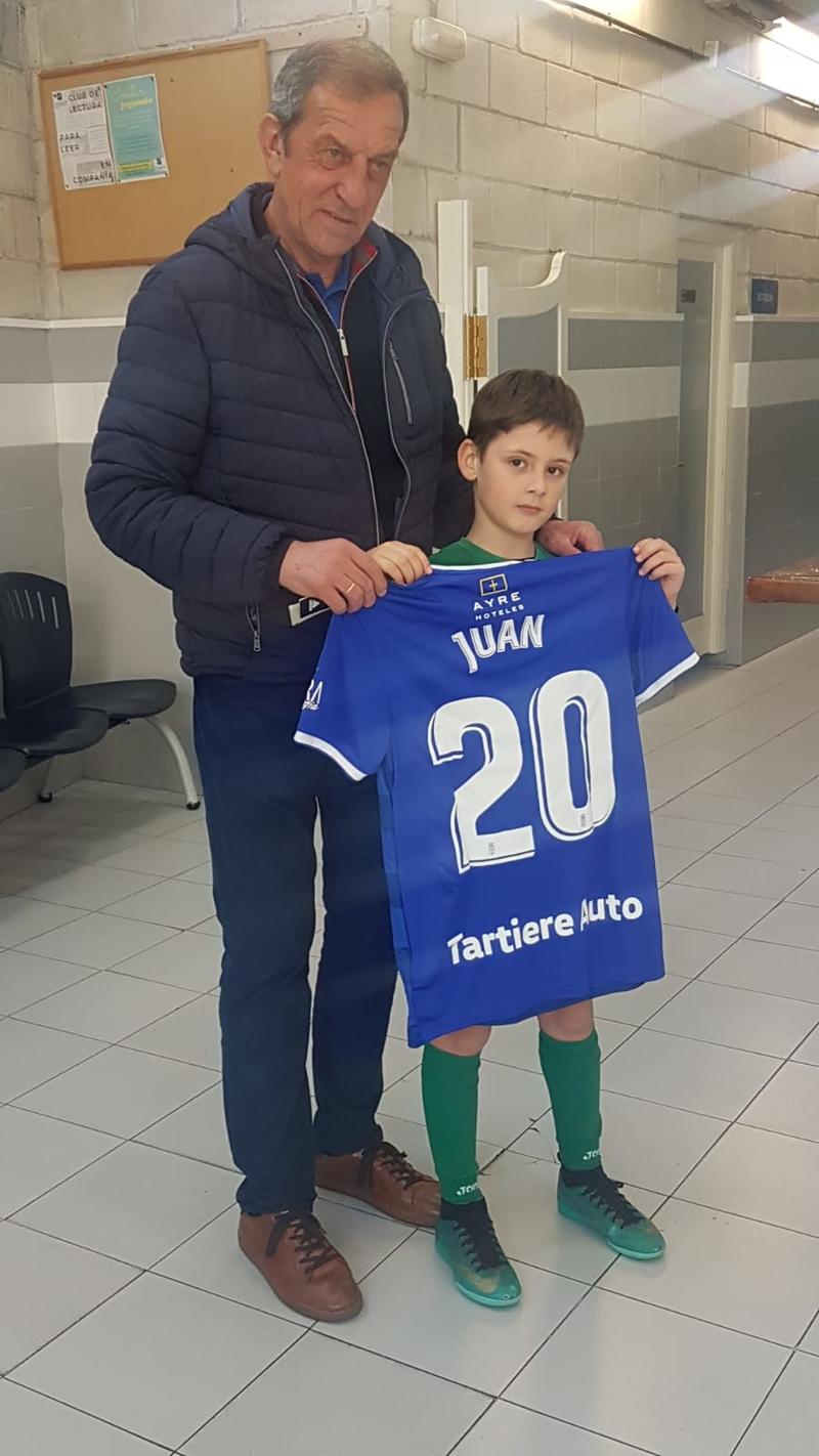Por fin le entregamos a Juan la camiseta que gano en el concurso, organizado por Chema, Cofradía de Estudientes, en San Mateo. Juan la gano por sacar la maxima puntuación en disparos a puerta.