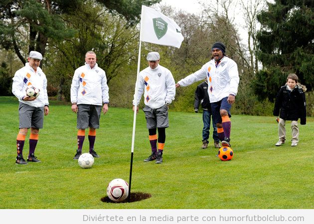 Hoy 1 del 7. El proximo domingo, día 3, a las 4,30h de la tarde, en el campo de Golf de la LLorea se jugará el torneo de FÚTGOLF. Participan  ex jugadores del R Avilés, Sporting y R Oviedo. Se juega con el pie y con un balón de fútbol.
