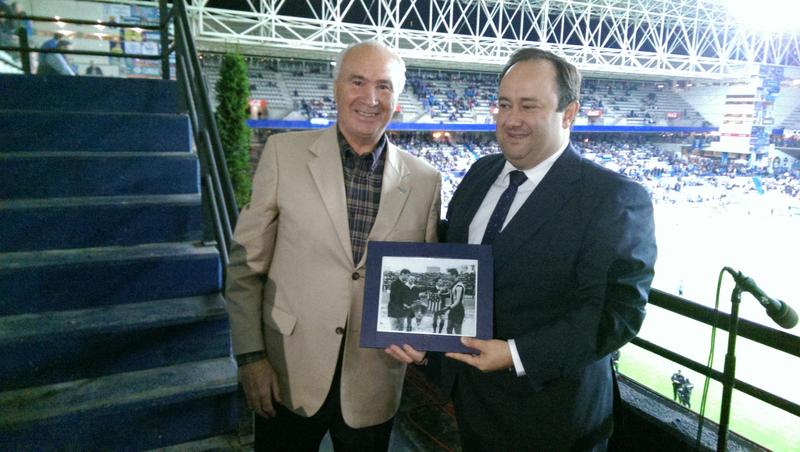 Hoy 24 del 10. Ayer en el descanos del partido, R Oviedo Tenerife, el R Oviedo homenajeo a su ex guardamenta BOUDON. El presidente del club, Jorge Vallina le hizo entrega de un cuadro. Le acompañaron Mesa, Tono, Quini y Vuicente