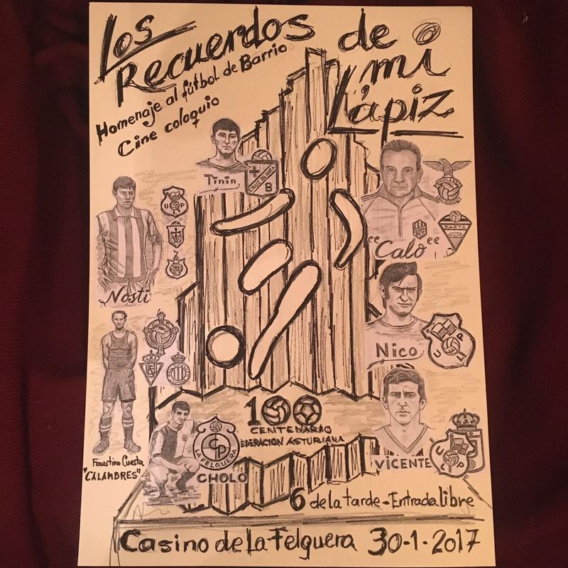 Hoy 30 del 1. Hoy, a las seis de la tarde, en el Casino de la Felguera, tendrá lugar el HOMENAJE al FÚTBOL de BARRIO del VALLE del NALÓN años 50 y 60, con proyección de película sobre el fútbol de los años 50 y posteri coloquio homenaje a: "Cholo", "Nosti", "Calo", "Vicente", "Nico", "Cuesta" y "Tinin"
