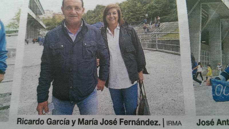 Hoy 3 del 10. Antes de los partidos del R Oviedo en el Tartiere, la Nueva España fotografía a los aficionados que van al partido y al día siguiente lo saca en el periódico. Hoy sale nuestro compañero Ricardo García "Richar" y María José