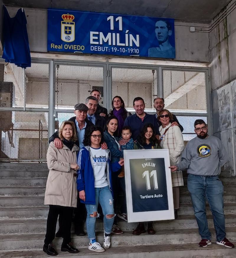 Ayer dia 1 de abril dentro de los actos del 97 aniversario del Real Oviedo se rindió homenaje a Emilio García Martínez, "EMILÍN", jugador del Club durante 15 Temporadas, dandole el nombre de la Puerta nº 11 del Estadio Carlos Tartiere; en la foto vemos a sus Familiares, acompañados de Martín Peláez, Presidente del Real Oviedo y María Joglar y Nacho Súarez de Peñas Azules