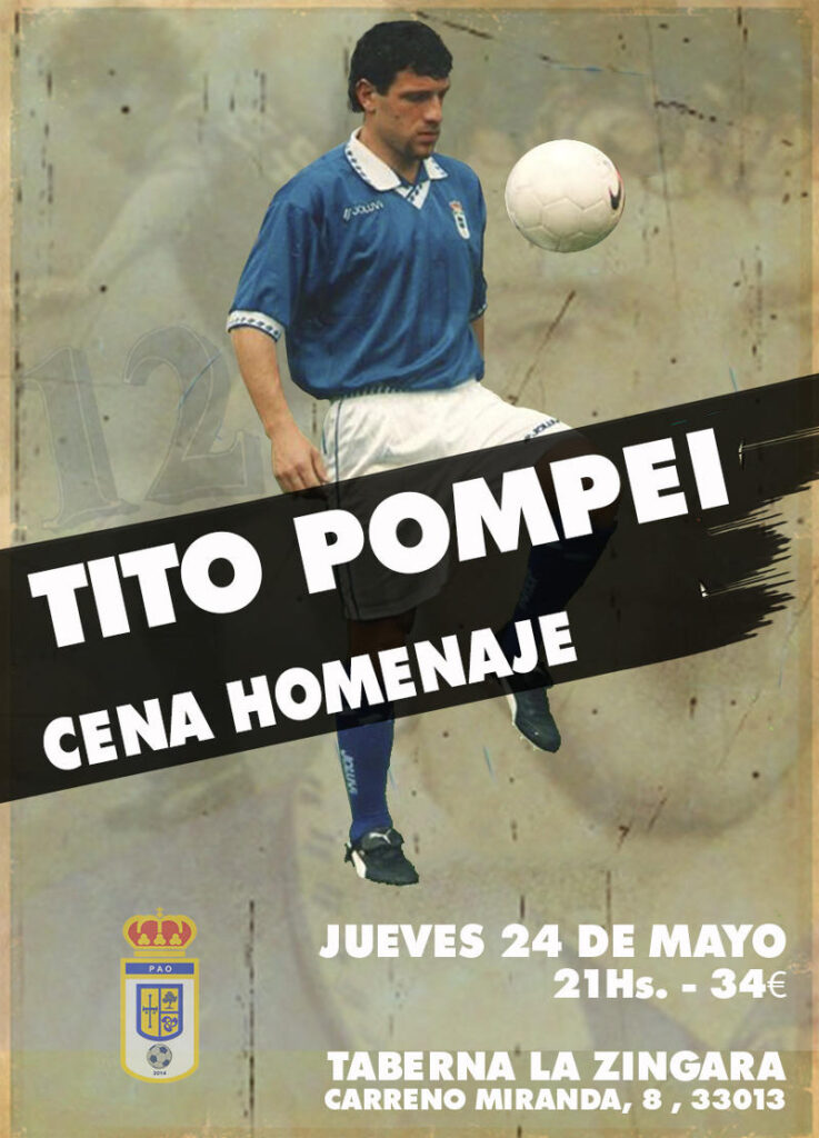 Hoy 13 del 5 El que fuera jugador del R Oviedo "TITO" Pompei estará unos dias en Oviedo. El proximo sábado irá al Carlos Tartiere a ver el partido del R Oviedo y el día 24, jueves, le haran una cena-homenaje, a las 21h, en la taberna La Zingara