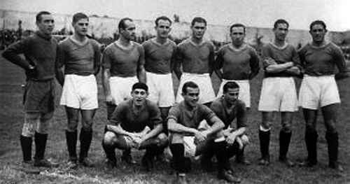 Foto: R Oviedo 2-1 Atl Aviación, en Buenavista, el 11-10 de 1942. Sirio, tercero de pie por la derecha, entre Emilin y Chas