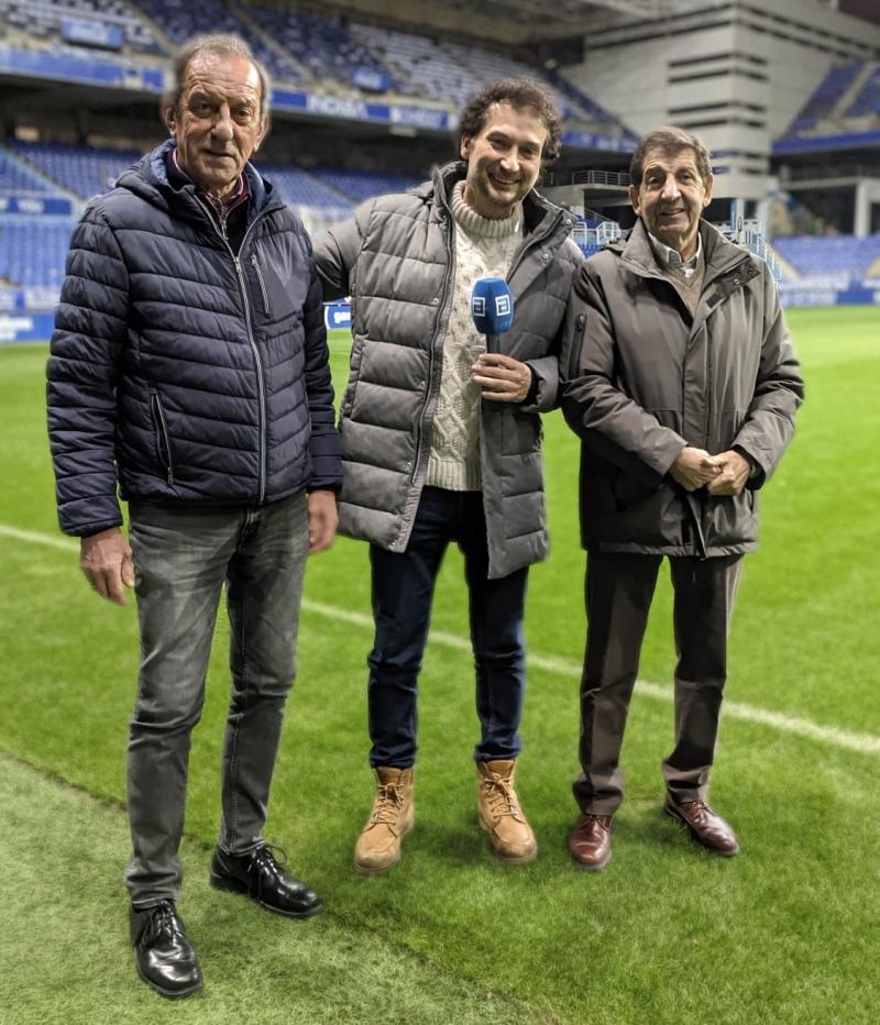 En la foto un momento de la entrevista en el Carlos Tartiere.