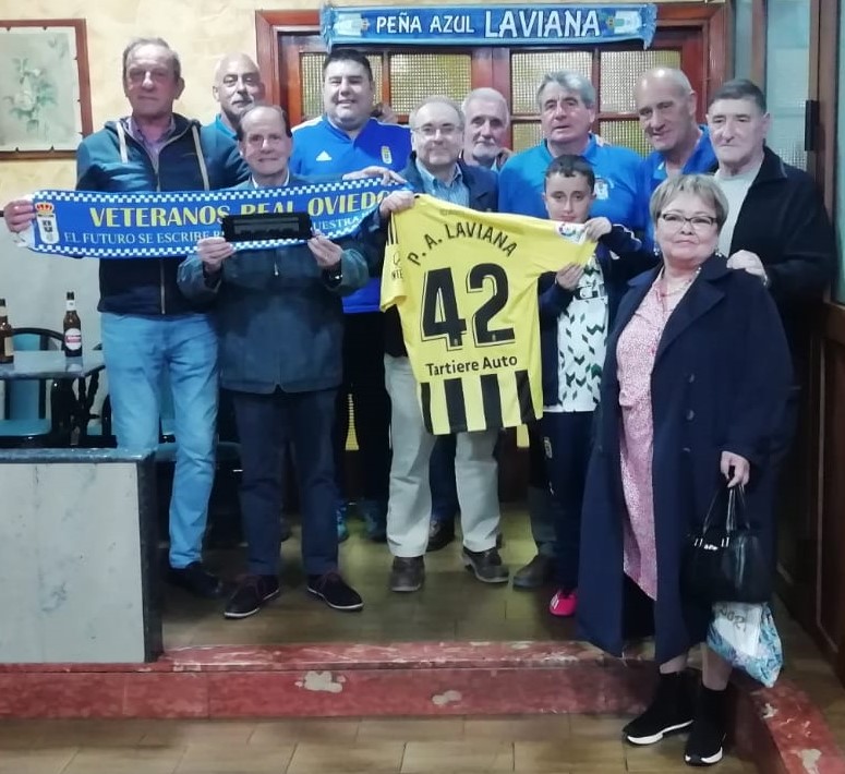 Ayer viernes se celebró el 42 aniversario de la Peña Azul Laviana, acto en el quer estuvimos representados Por nuestro Presidente Vicente González al que vemos en la fotografia con los Representantes de la Peña, del Real Oviedo y de Aparo